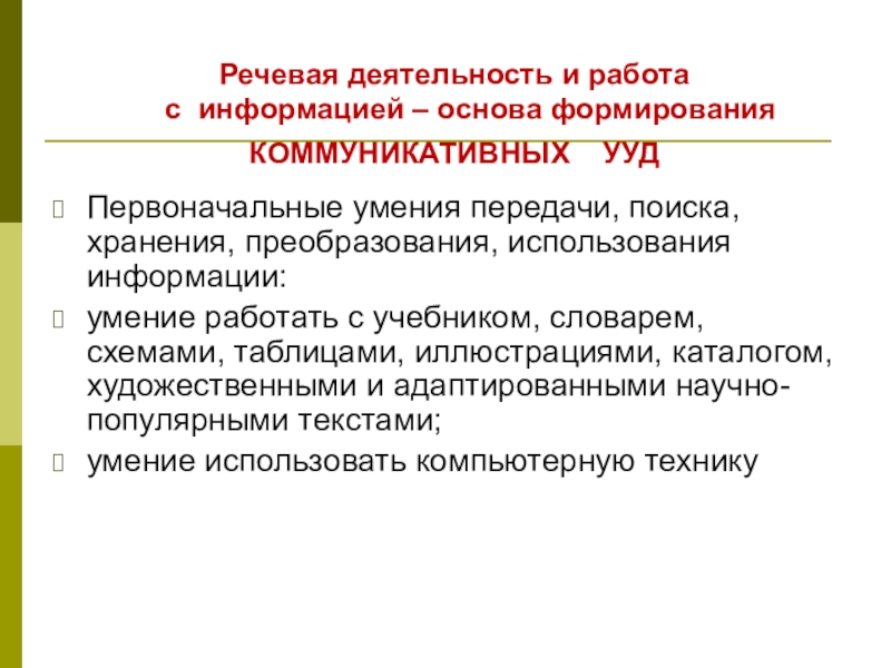 Первоначальные умения передачи, поиска, хранения, преобразования, использования информации: