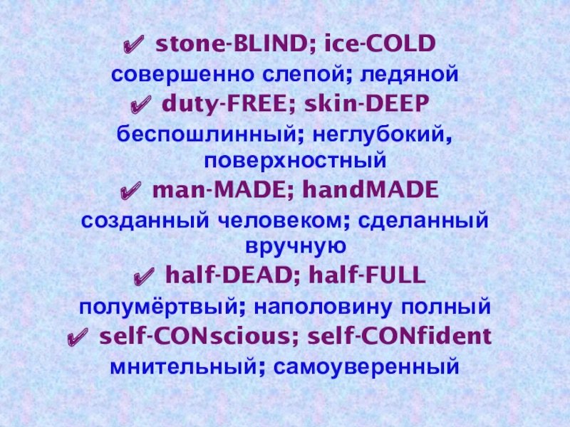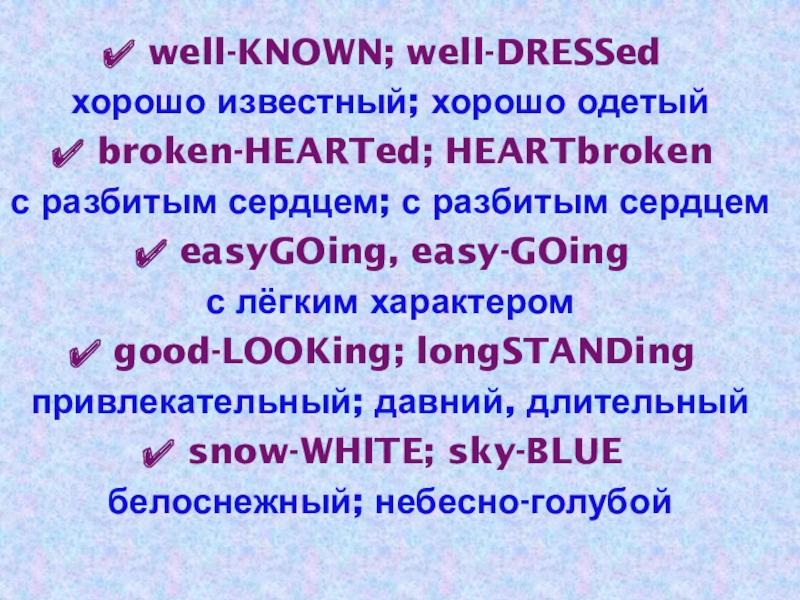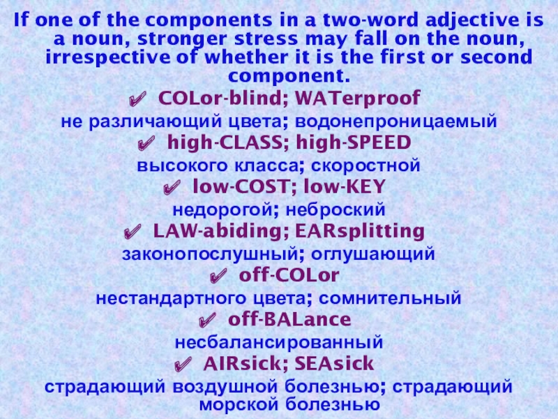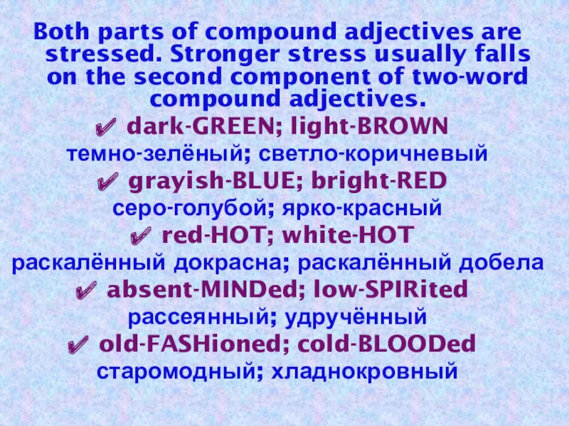 Слайд 29Both parts of compound adjectives are stressed. Stronger stress usually falls
