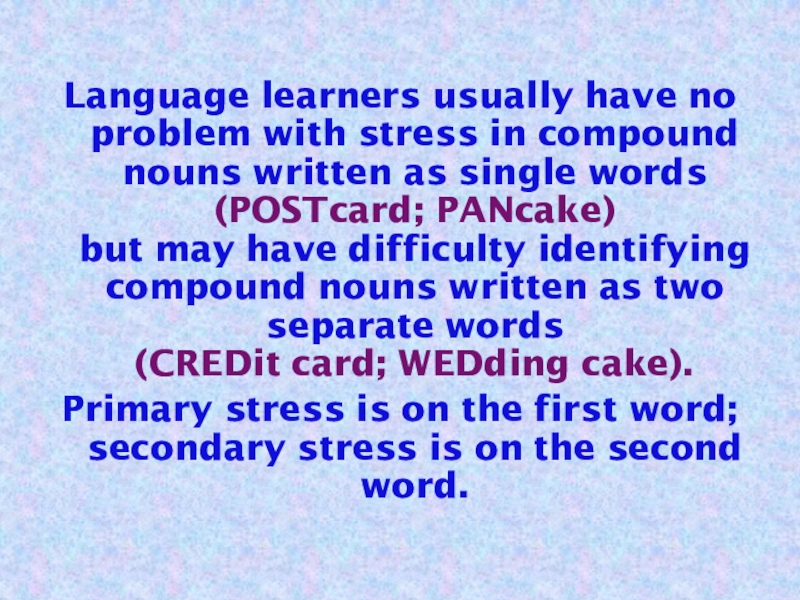Слайд 16Language learners usually have no problem with stress in compound nouns