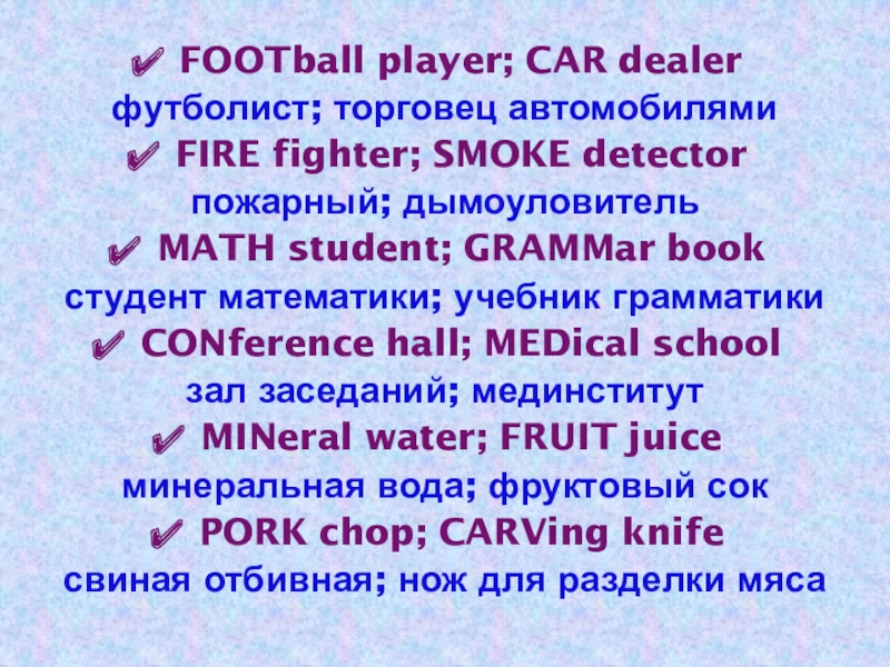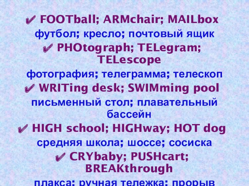 Слайд 6In compound nouns, both components (both words) are stressed.