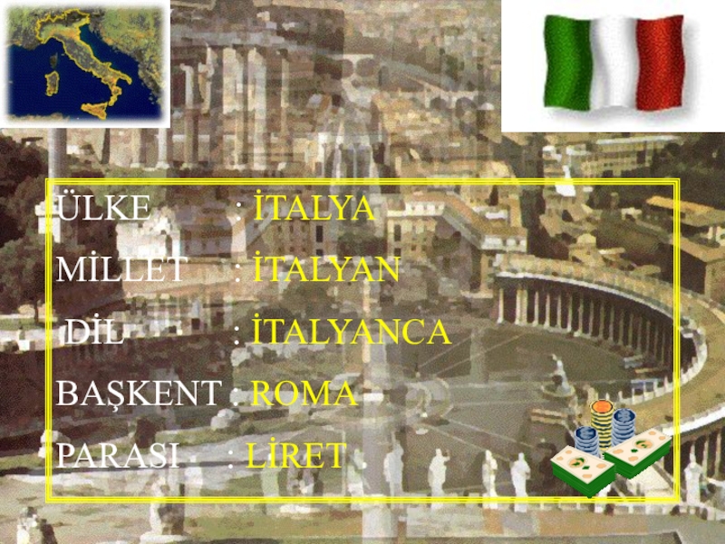 ÜLKE     : İTALYAMİLLET   : İTALYAN DİL