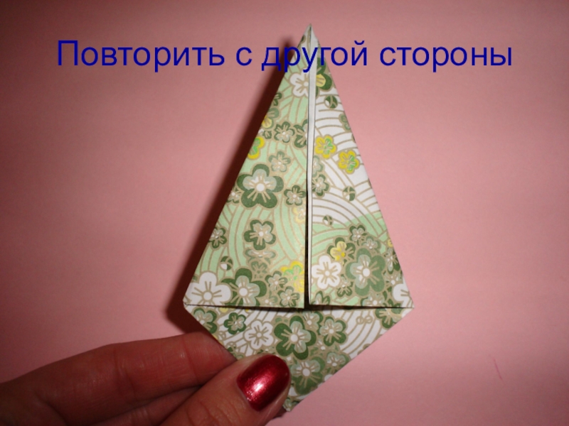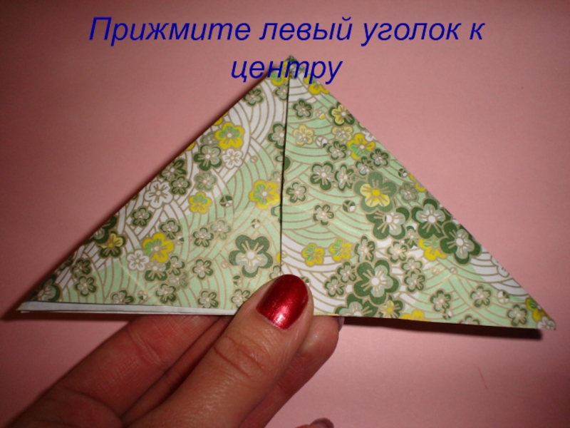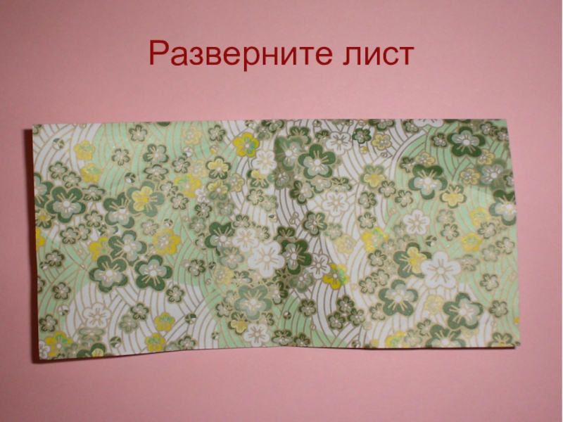 Расправив треугольник, сделайте квадрат. Возьмите листок в руки как показано на