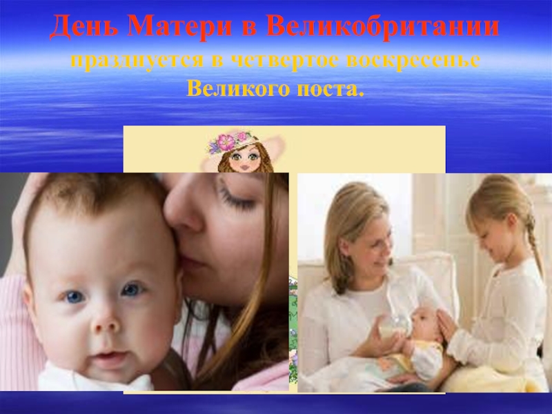 Слайд 9День Матери в Великобритании празднуется в четвертое воскресенье Великого поста.