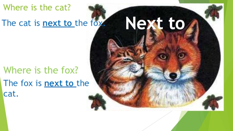 The fox is next to the cat.