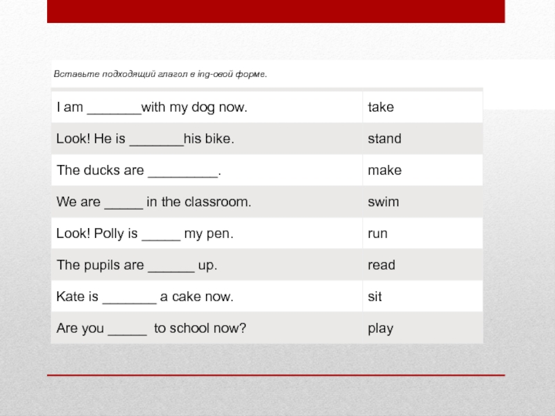 Упражнение 2. Заполни таблицу. Вставьте подходящий глагол в ing-овой форме.