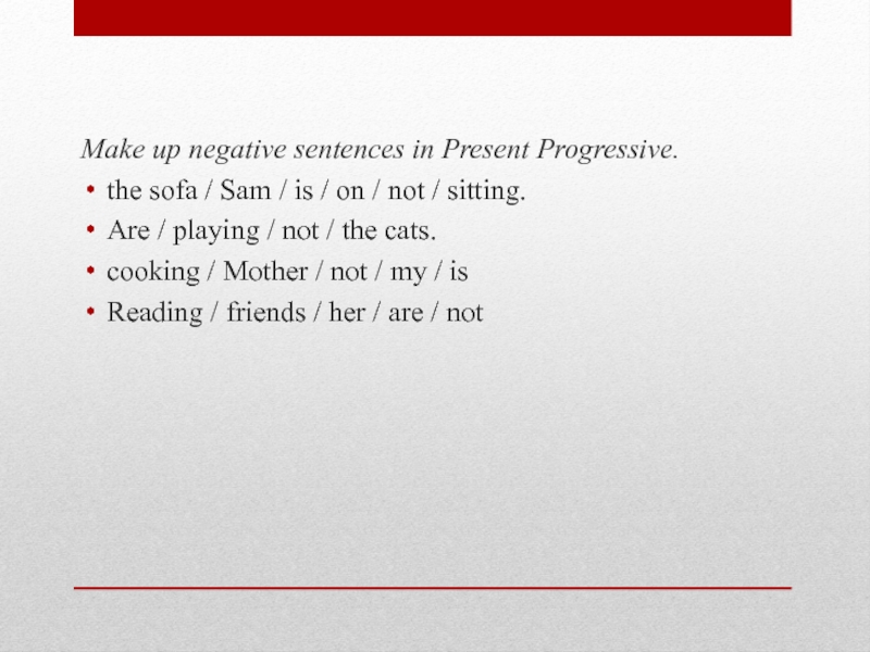 Слайд 7Make up negative sentences in Present Progressive.
