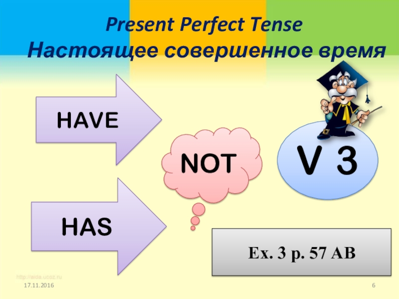 Present Perfect Tense Настоящее совершенное время HAVEHASNOTV 3Ex. 3 p. 57 AB