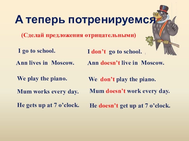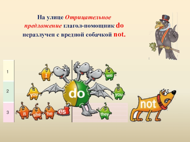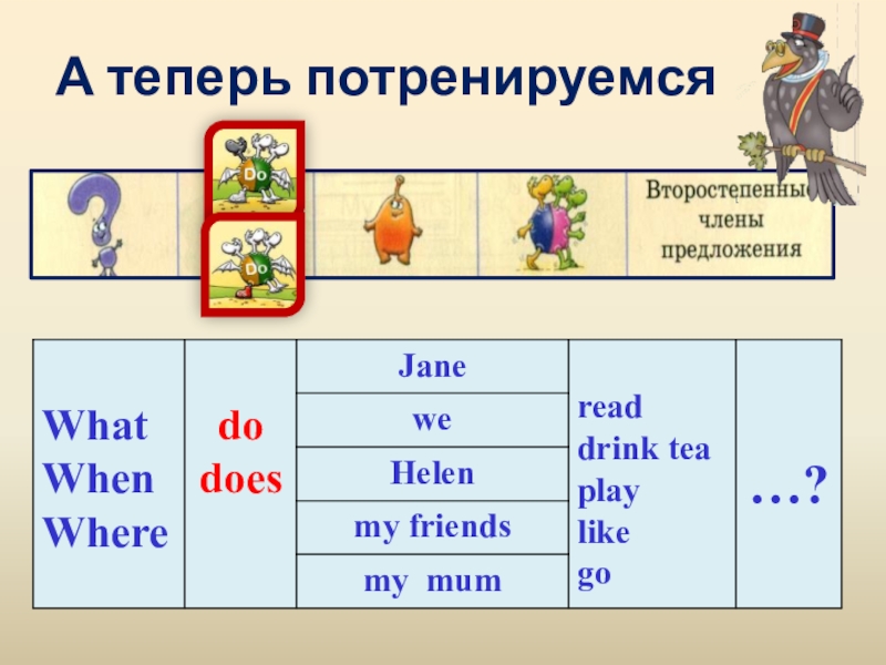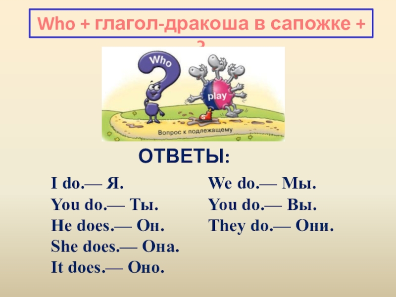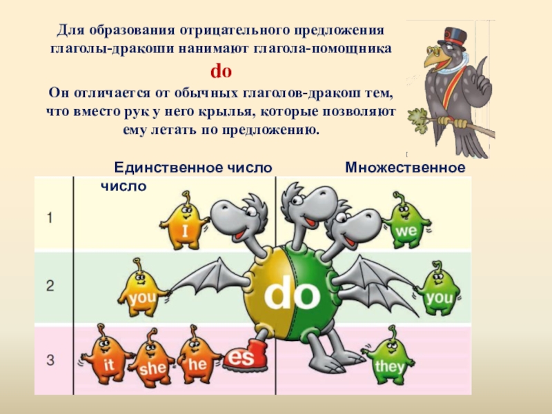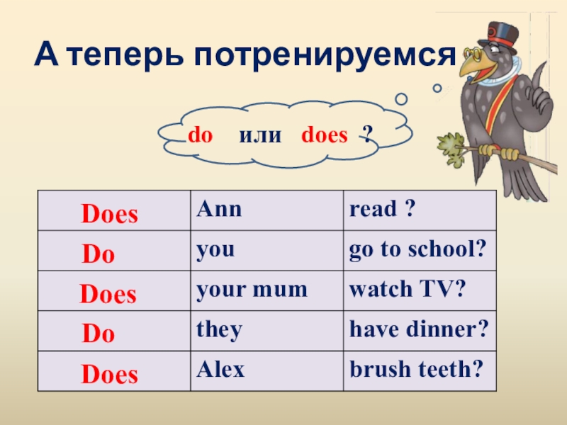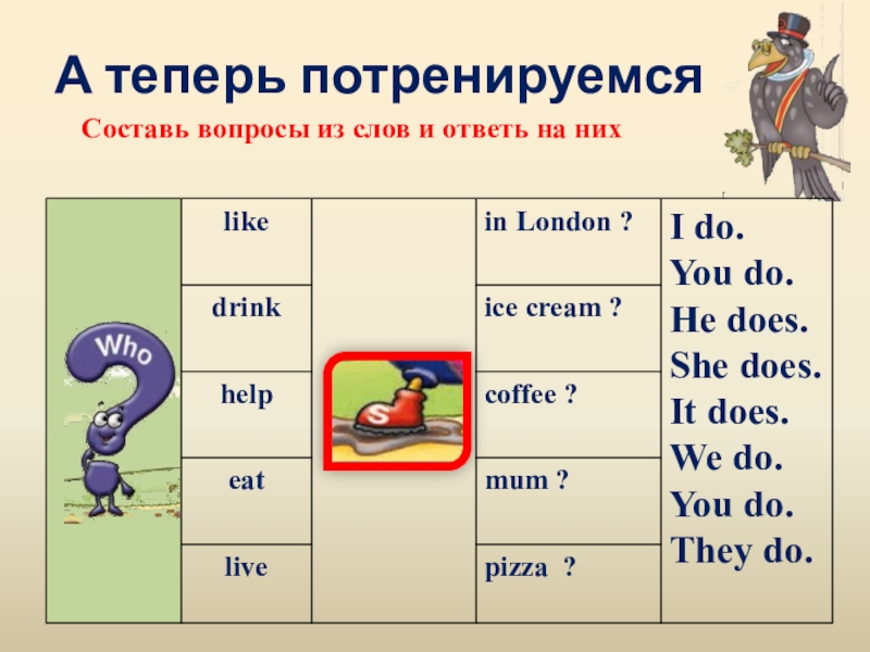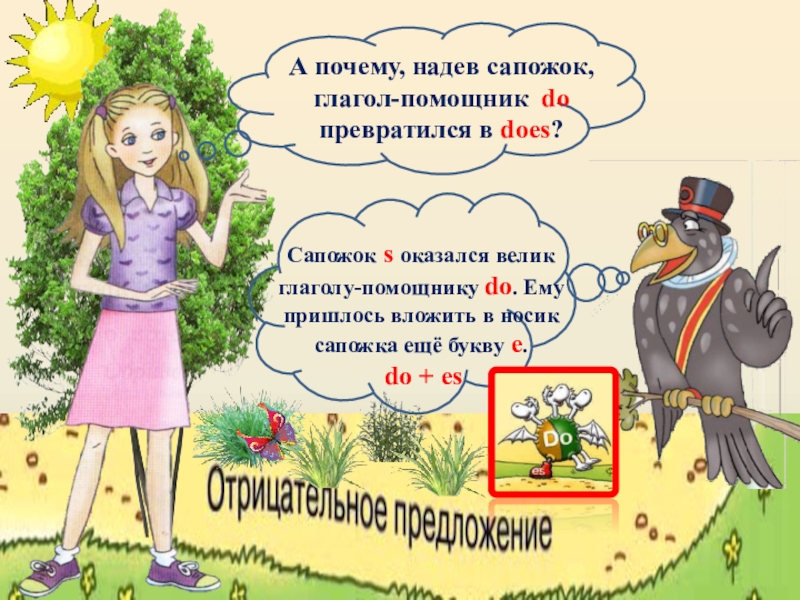 Сапожок s оказался велик глаголу-помощнику do. Ему пришлось вложить в носик сапожка ещё букву е.