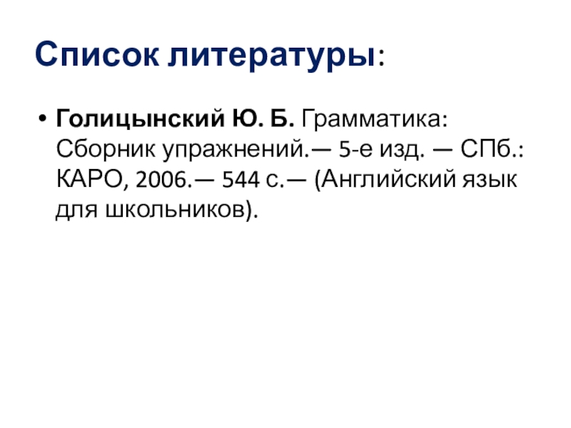 Голицынский Ю. Б. Грамматика: Сборник упражнений.— 5-е изд. — СПб.: