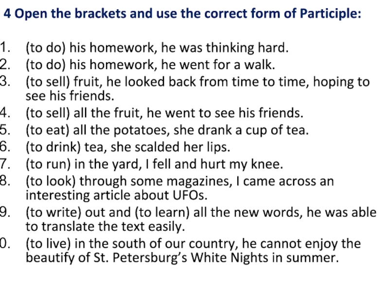 Слайд 84 Open the brackets and use the correct form of Participle: