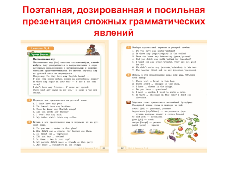 Слайд 7Поэтапная, дозированная и посильная презентация сложных грамматических явлений