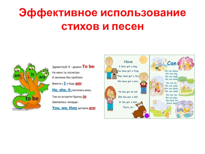 Слайд 8Эффективное использование стихов и песен