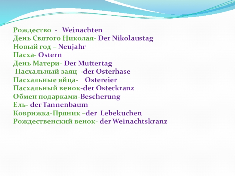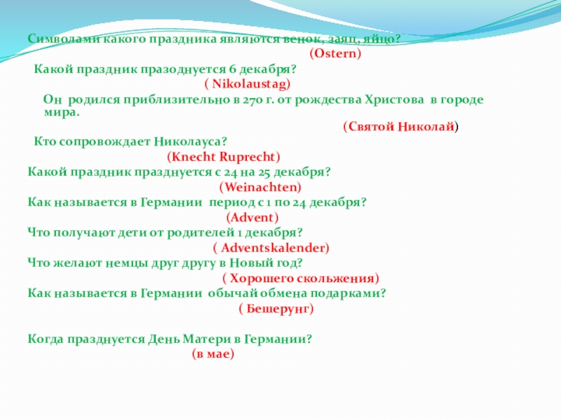 Расширить страноведческие знания о Германии, систематизировать информацию о праздниках Германии.