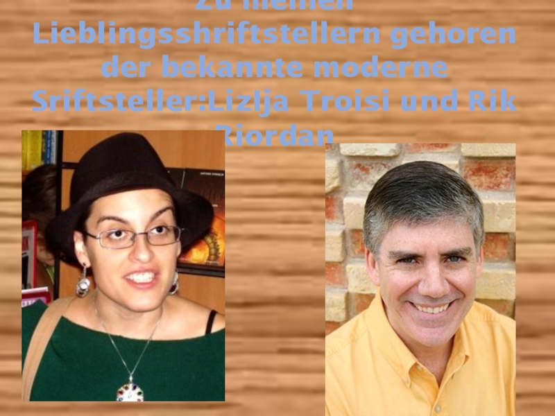 Слайд 3Zu meinen Lieblingsshriftstellern gehoren der bekannte moderne Sriftsteller:LizIja Troisi und Rik