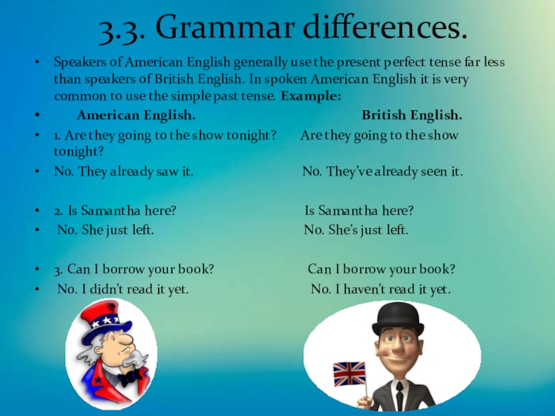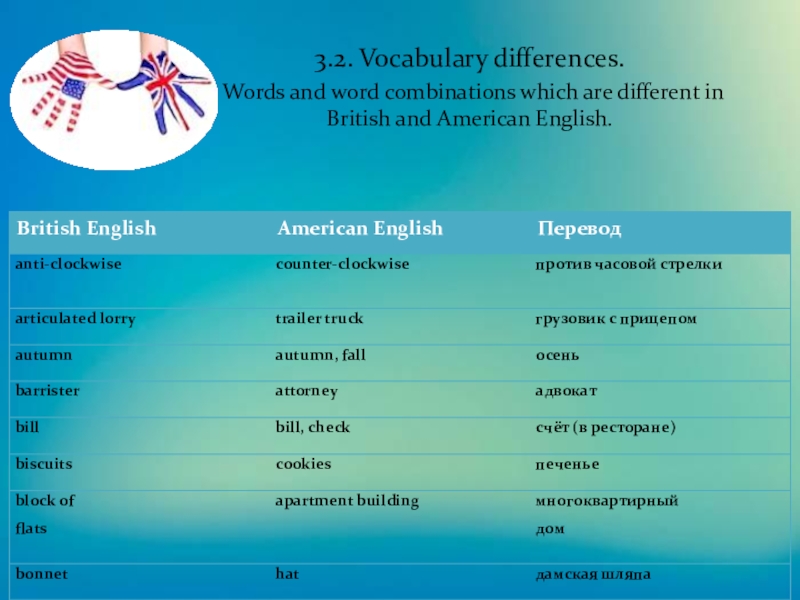 context of the origin of American English. I have stated grammatical, lexical and phonetic features of the American and British English.