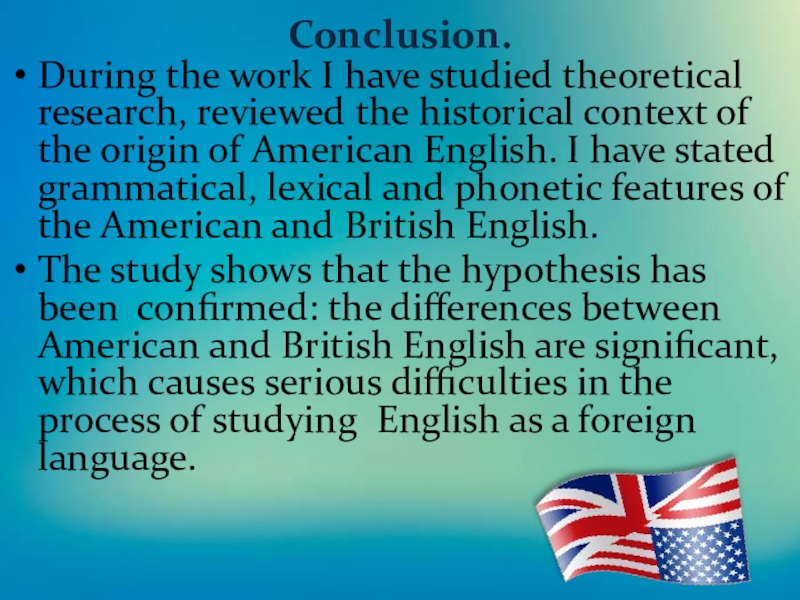 Hypothesis of the study: the differences between American and British English are significant, which causes serious difficulties in studying English as a foreign language.