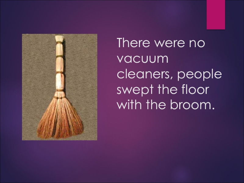 Слайд 6There were no vacuum cleaners, people swept the floor with the