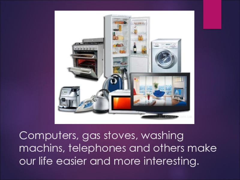 Computers, gas stoves, washing machins, telephones and others make our life easier and more interesting.