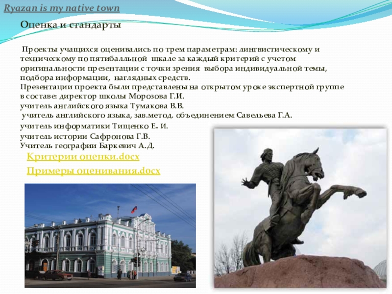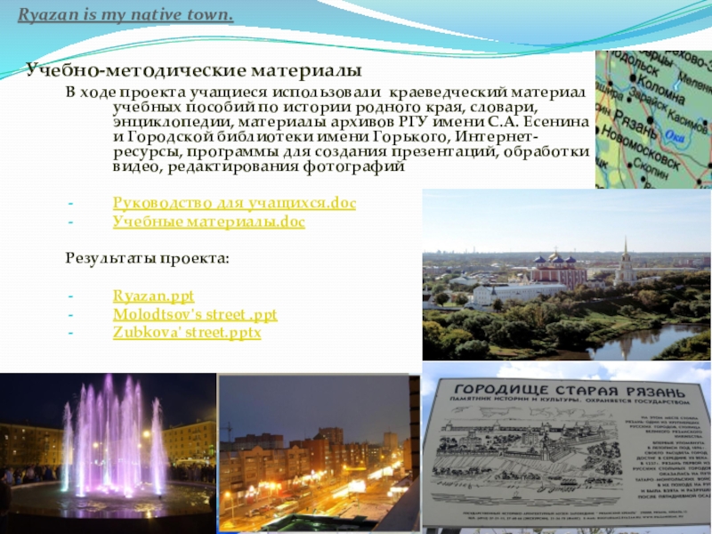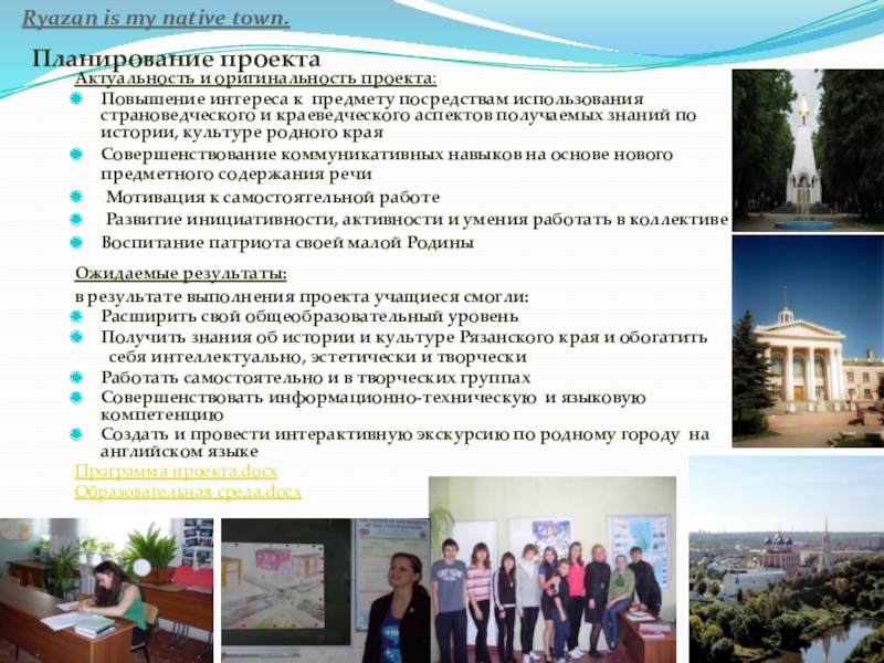 Проект «Ryazan is my native town » помогает учащимся увидеть значение исторической целостности родного города и почувствовать гордость за малую родину.