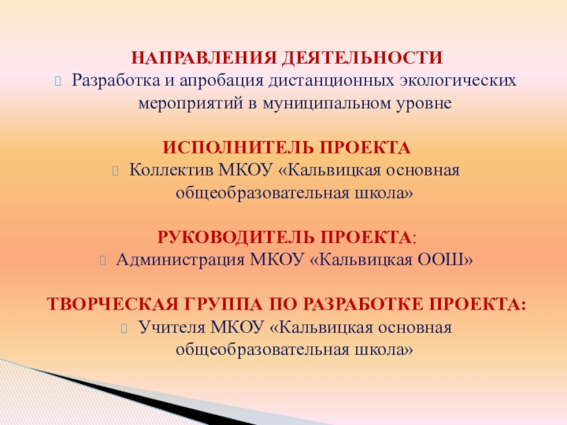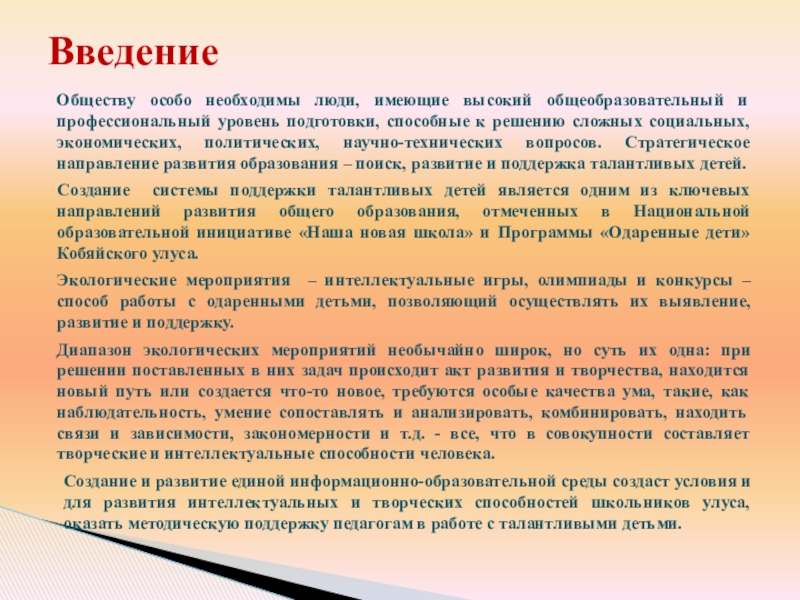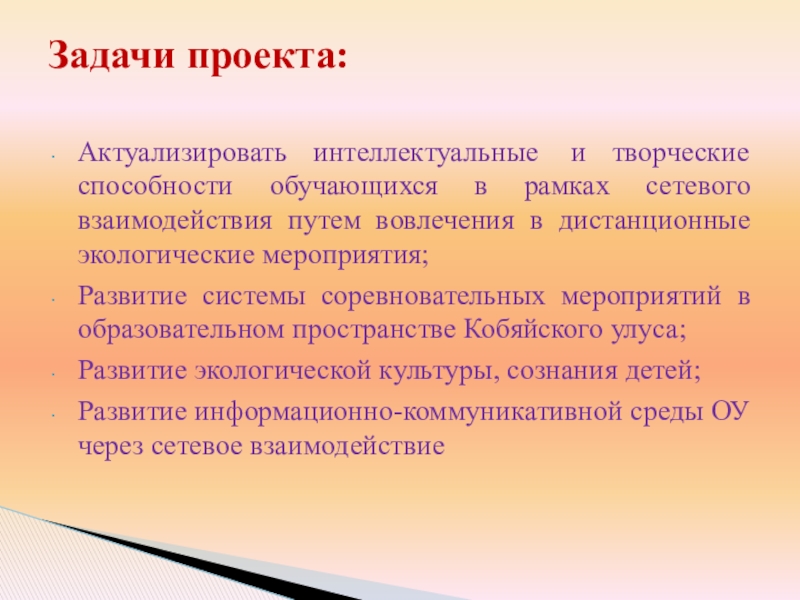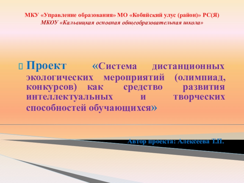 Проект «Система дистанционных экологических мероприятий (олимпиад, конкурсов) как средство развития интеллектуальных и творческих способностей обучающихся»