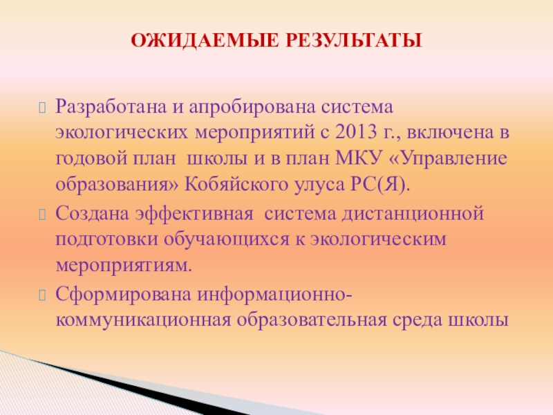 ОЖИДАЕМЫЕ РЕЗУЛЬТАТЫ