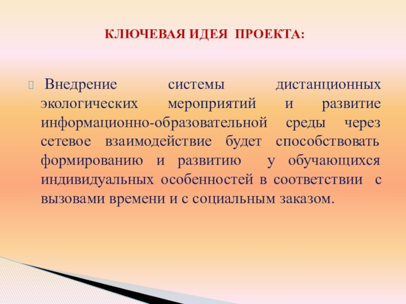 КЛЮЧЕВАЯ ИДЕЯ ПРОЕКТА: