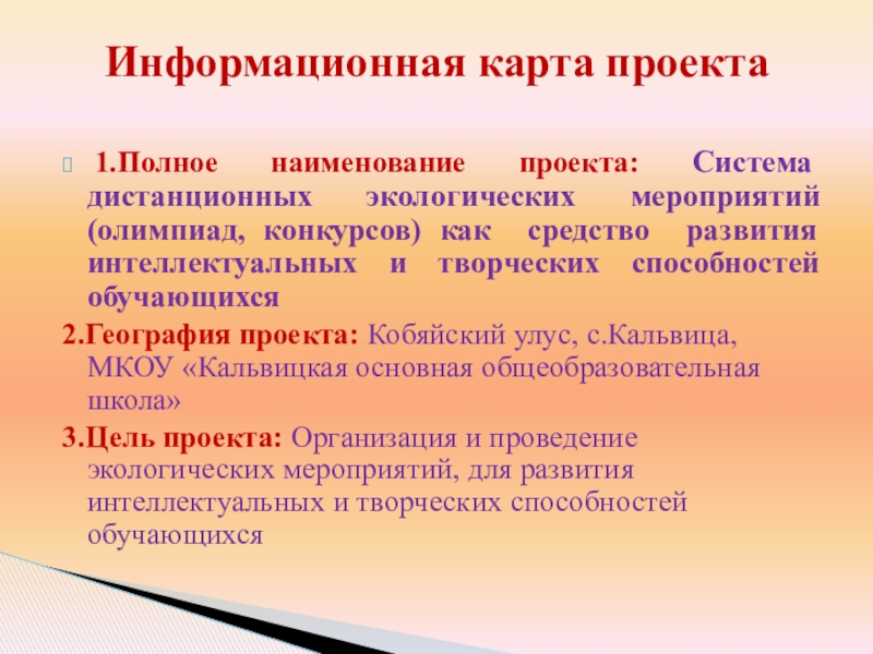 Информационная карта проекта