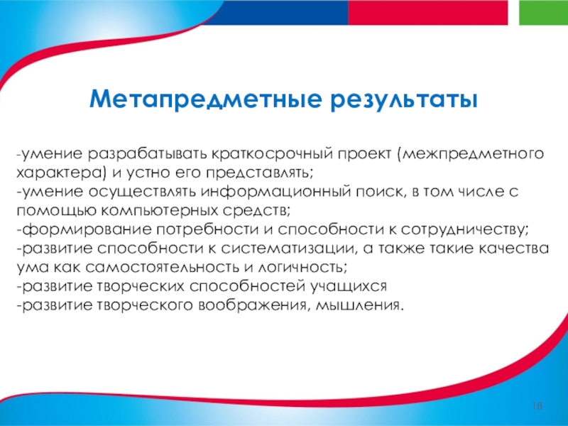 -умение разрабатывать краткосрочный проект (межпредметного характера) и устно его представлять;