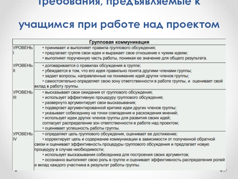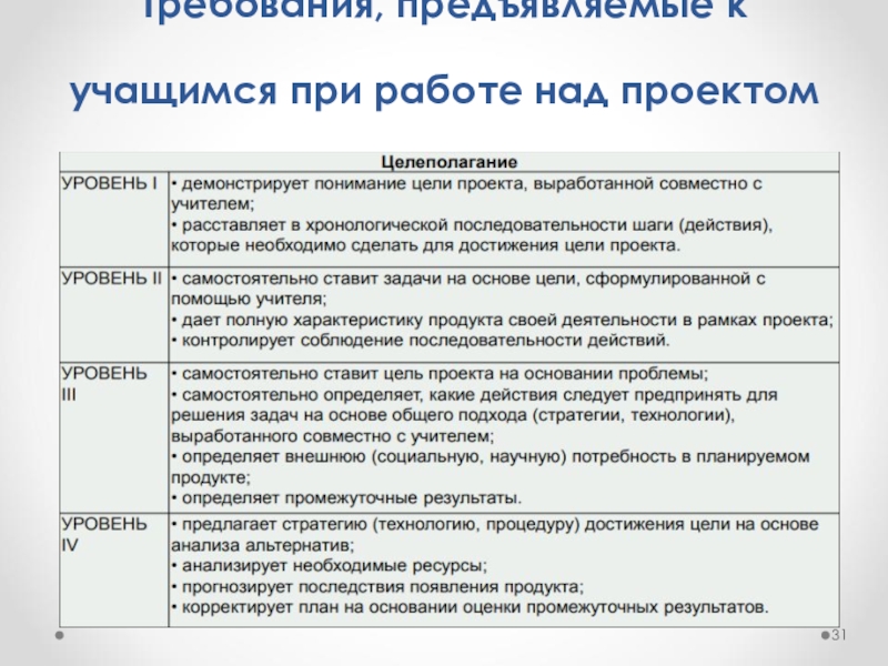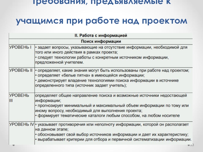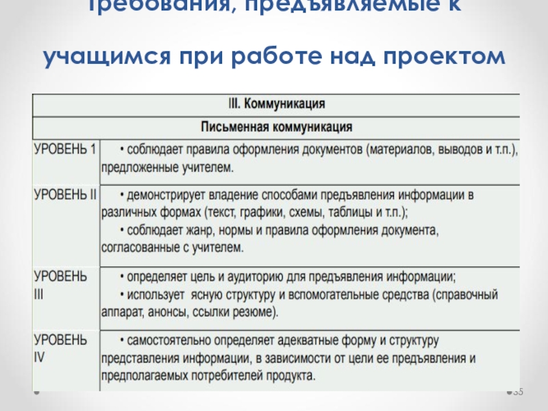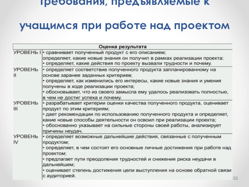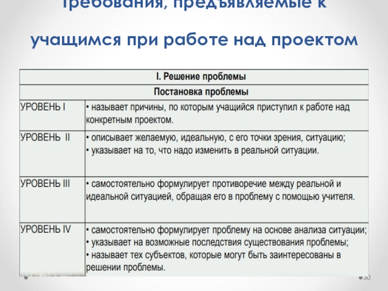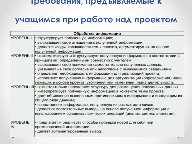 Слайд 30Требования, предъявляемые к учащимся при работе над проектом
