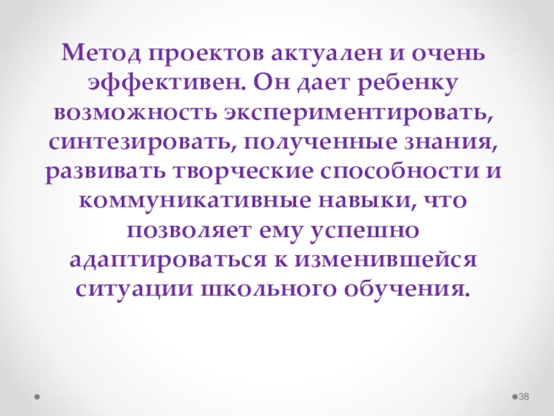 Слайд 38Метод проектов актуален и очень эффективен. Он дает ребенку возможность экспериментировать,