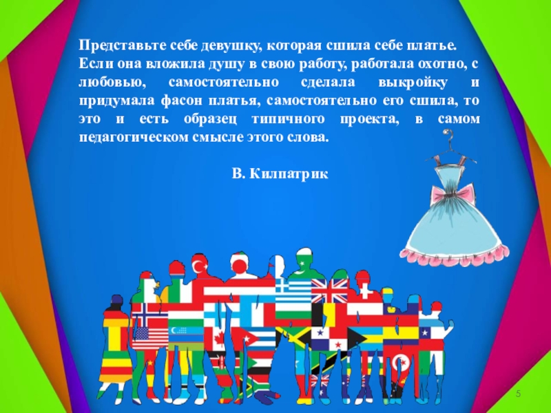 Слайд 5Представьте себе девушку, которая сшила себе платье.
