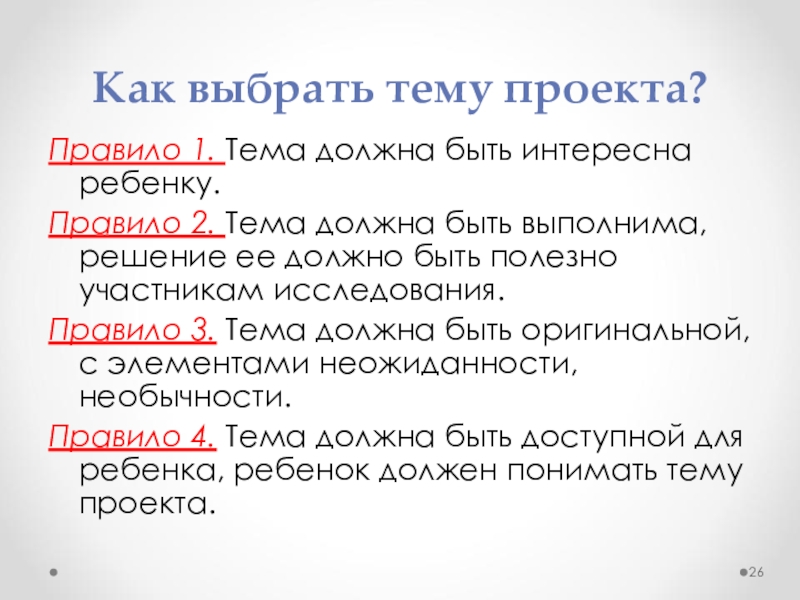 Правило 4. Тема должна быть доступной для ребенка, ребенок должен понимать тему проекта.