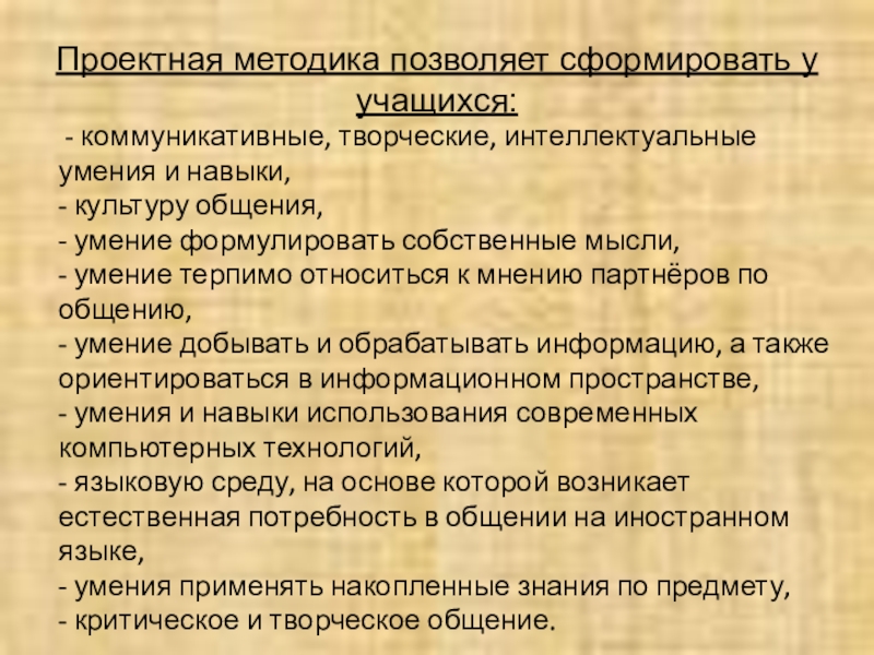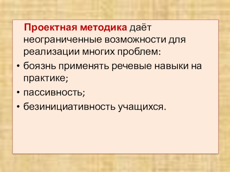 Слайд 9 Проектная методика даёт неограниченные возможности для реализации многих проблем: