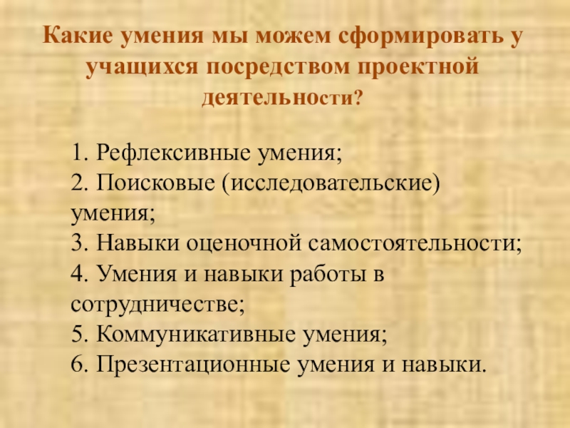 Какие умения мы можем сформировать у учащихся посредством проектной деятельности?