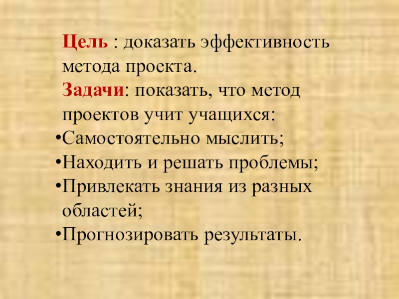 Метод проектов –эффективен, так как ученик может показать свои сильные стороны,«слабого» можно подключить к «сильному», учитель имеет возможность задействовать всех учащихся.