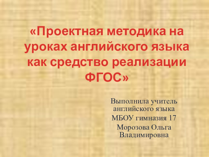 Слайд 1«Проектная методика на уроках английского языка как средство реализации ФГОС»