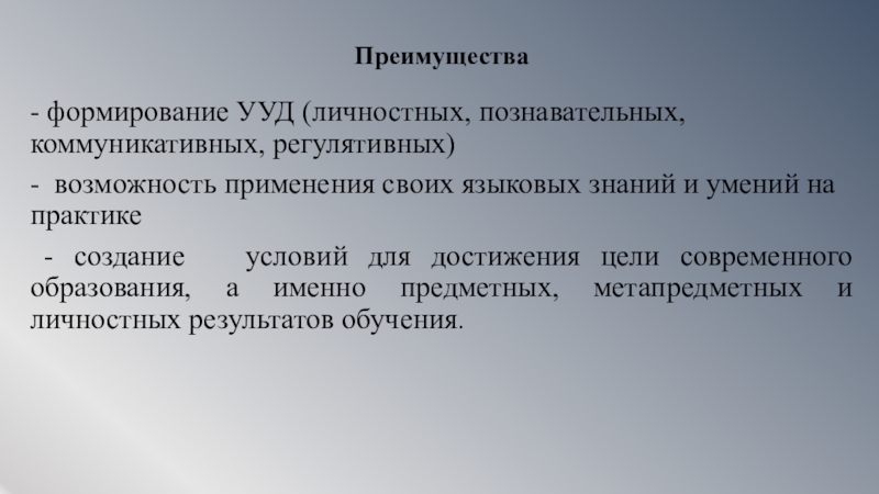 - формирование УУД (личностных, познавательных, коммуникативных, регулятивных)