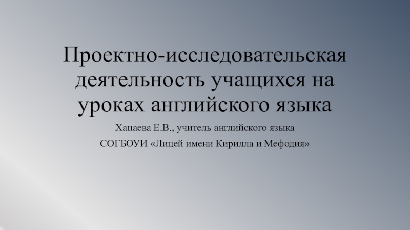 Слайд 1Проектно-исследовательская деятельность учащихся на уроках английского языка
