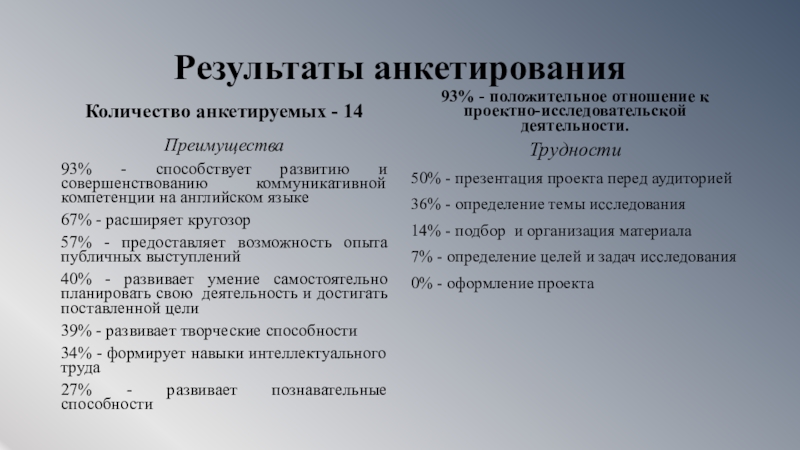 93% - положительное отношение к проектно-исследовательской деятельности.