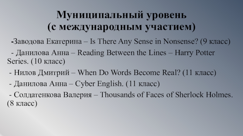 - Нилов Дмитрий – When Do Words Become Real? (11 класс)
