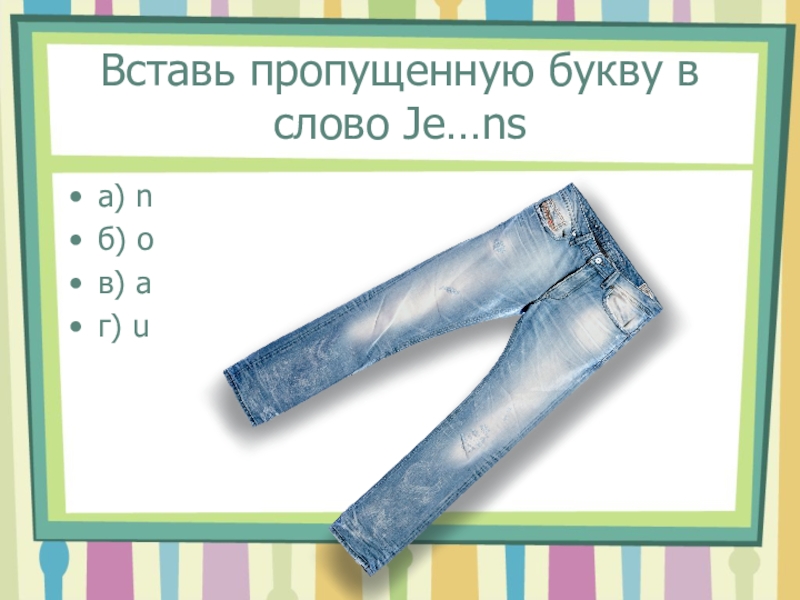 Слайд 8Вставь пропущенную букву в слово Je…ns