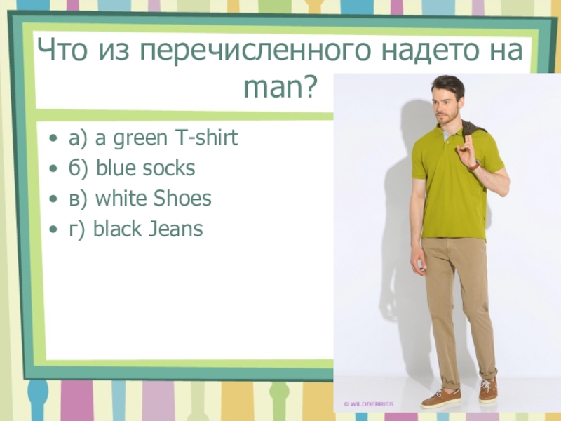 Слайд 3Что из перечисленного надето на man?
