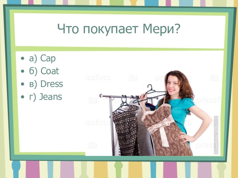 Что покупает Мери?а) Capб) Coatв) Dressг) Jeans