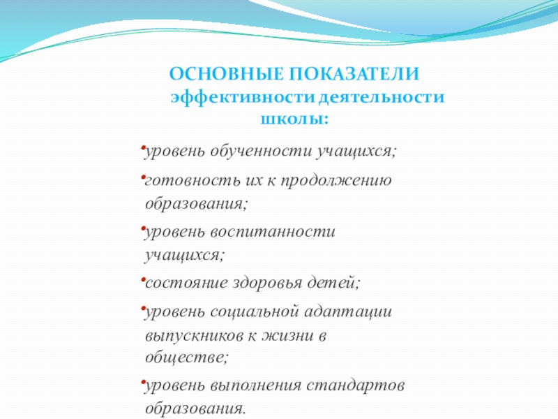 эффективности деятельности школы: