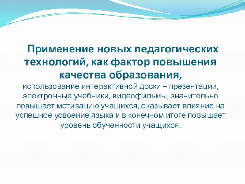 Слайд 10 Применение новых педагогических технологий, как фактор повышения качества образования,