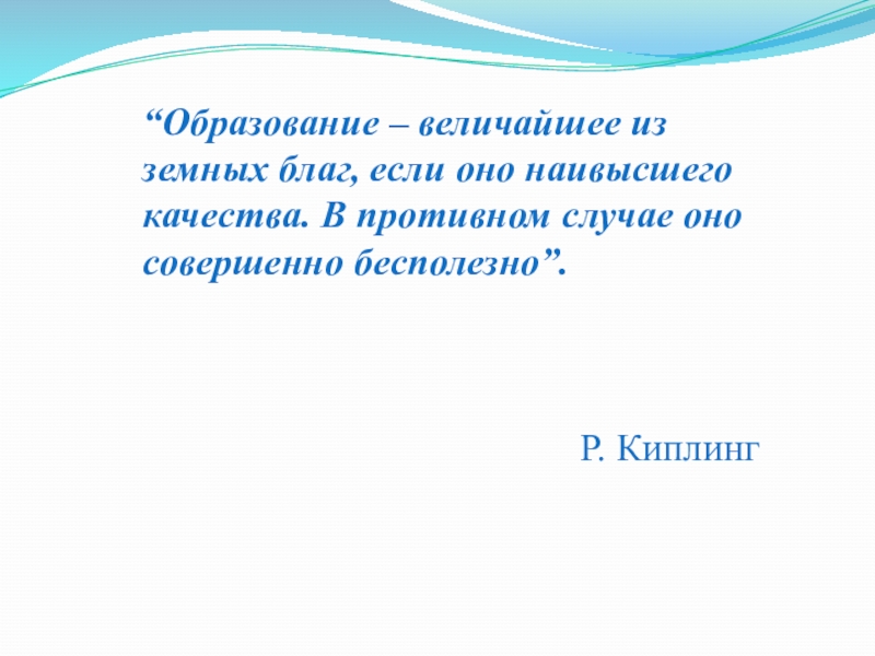 Слайд 2“Образование – величайшее из земных благ, если оно наивысшего качества. В