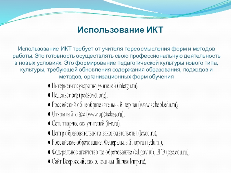 Слайд 14 Использование ИКТ