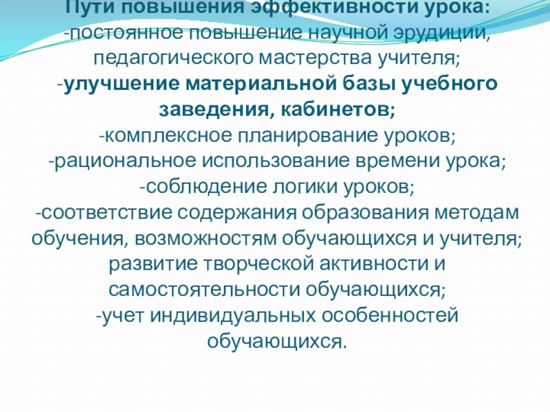Пути повышения эффективности урока: