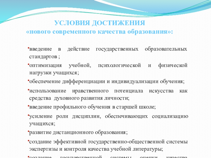 «нового современного качества образования»: