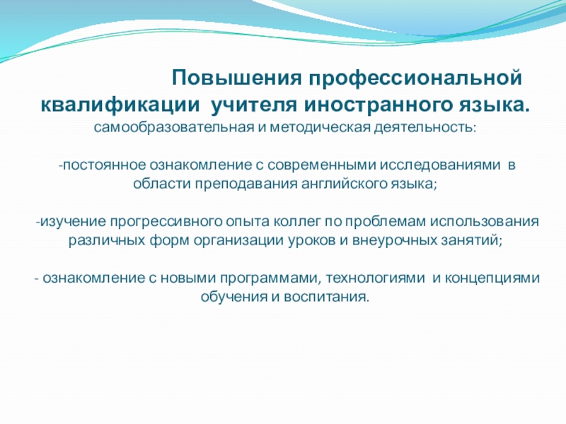 -постоянное ознакомление с современными исследованиями в области преподавания английского языка;
